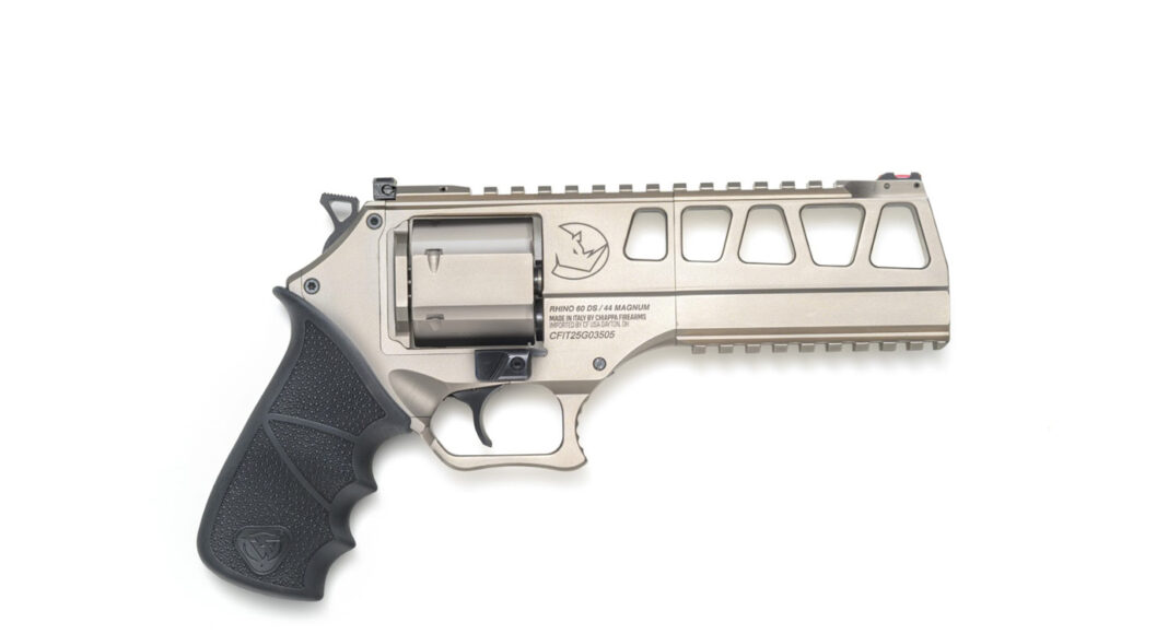 The Chiappa Rhino Revolver L-Frame 60 DS is one of those oddball guns you might not need but definitely want. I reviewed the .44 Magnum Chrome edition, and on paper, it shot almost a 1-inch group at 20 yards with iron sights. With a red dot optic on it, it was even easier to sight in and shoot groups on paper and ring steel out to 50 yards. Despite its caliber, the bottom cylinder bore axis and the gun’s overall weight make it super pleasurable to shoot, with no wrist-breaking recoil. The new finger rests on each side of the revolver are intentionally designed to keep the shooter’s fingers away from the cylinder gap. I’m not a big double-action person, but the single-action trigger was very fun to shoot. The double-action trigger pull on the Chiappa Rhino is heavy but still smooth. Overall, I found this gun to be one of the most fun guns I’ve shot in a while, and even enjoyed shooting it one-handed.