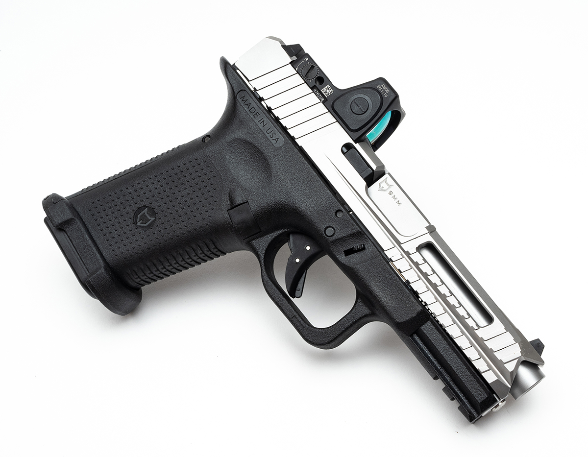 With a more standard-sized compact, Lone Wolf offered up its new LTD19 V2 for review. It’s a sleek and spacy looking pistol with its two-tone appearance, though a solid back version is available. The LTD19 V2 includes unique and very effective cocking serrations at the front of the slide as well as a V-cut up front that allows the barrel to protrude just a bit for a little visual appeal.