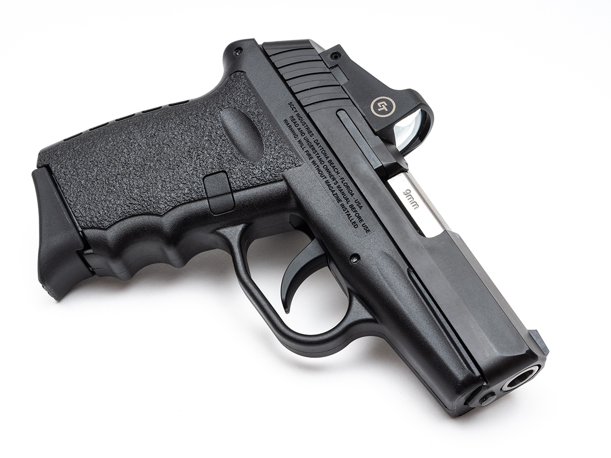 SCCY’s CPX-2 now offers a milled slide for the installation of a Crimson Trace CT 1500 red-dot sight. The post holes in the CT 1500 RDS are not used by CPX-2’s slide, with the pistol relying on a snug fit in the milled area. SCCY’s older CPX-2 gets a refresh with Crimson Trace’s CT 1500 red-dot sight. One of the CPX-2’s best features is the contoured and very comfortable grip. With the RDS installed, the CPX-2 does not have an iron sight available for co-witness. The finger grooves and cushioned backstrap on the CPX-2RD helped to nicely dampen the pistol’s felt recoil. The Crimson Trace CT1500 red-dot significantly improved Lincoln’s accuracy with the CPX2-RD. With the CT 1500 installed on the CPX-2RD, John made quick work of the steel plate rack.