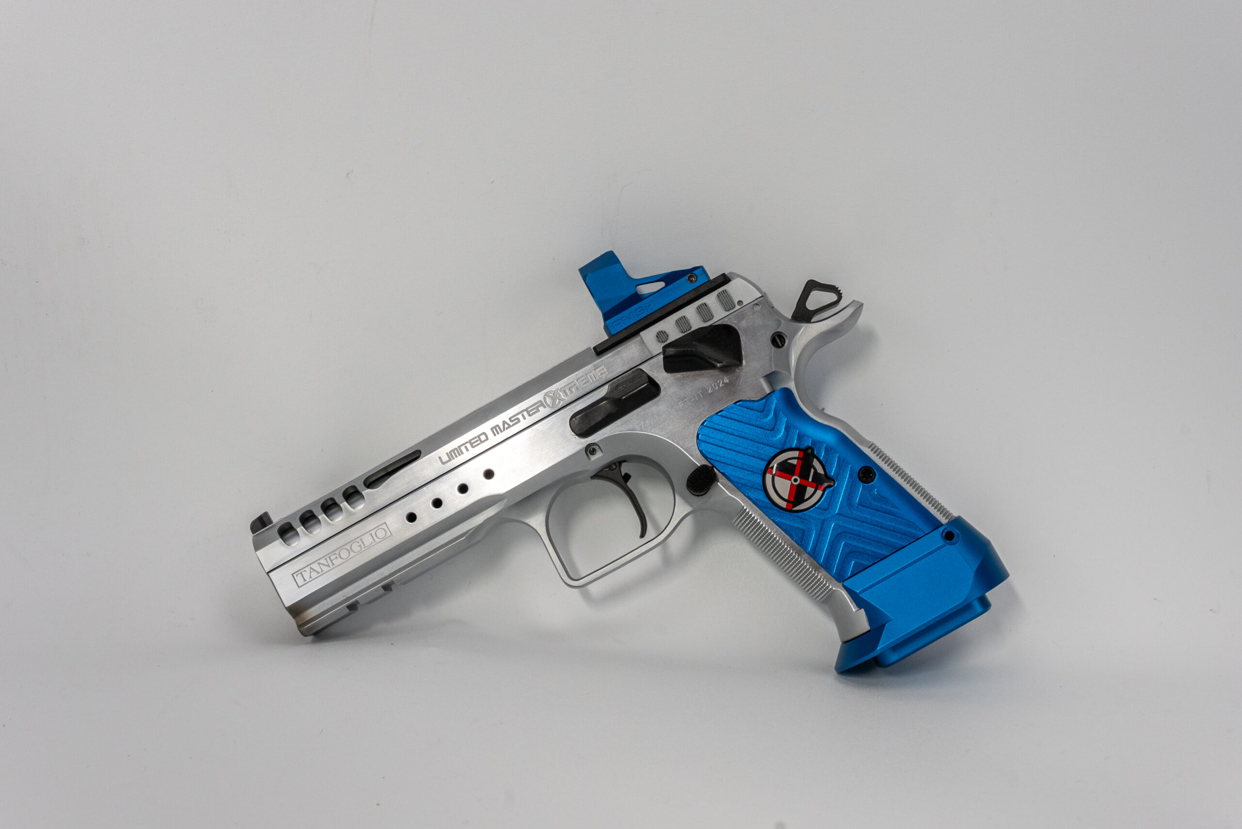 I’ve shot a Tanfoglio a time or two, and while I thought I knew how well the Limited Master Xtreme would shoot, I really didn’t know. Aesthetically, the Chrome gun with the blue accents and blue RMSx optic is beyond beautiful. Functionally, the gun has excellent ergonomics with an easy-to-manipulate, lightened slide. Performance-wise, the gun is a total knockout. I shot sub-one-inch groups at 20 yards with various 124-grain and 147-grain ammunition. Each load I tested met the minor power factor requirement for multiple shooting sports. Finally, the trigger on this pistol is out of this world. I shoot double-stack 1911s mostly, and while those triggers are set light with a short reset, the Limited Master Xtreme trigger will please even the snobbiest of trigger snobs (i.e., ME). Between the weight of the pistol and running slower velocity ammunition, the muzzle rise and felt recoil hardly exist. If you’ve got your eye on this gun for competition, it’s race-ready from the factory.