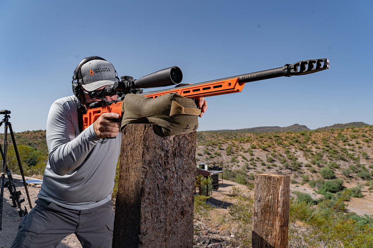 It features a meticulously machined chassis system with M-Lok attachments up front, but could use more space. Arca attachment is built in and ready to take the appropriate bipod mount. While orange in color, it’s racy but might be the most minimalist of all the chassis and that’s not a bad thing. It feels light and maneuverable and while it doesn’t have the most adjustability in the butt, it is the slickest to operate with solid, easy-to-manipulate push-button/spring resistant hardware. It’s extremely well done.